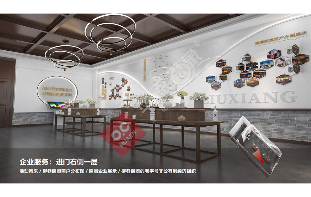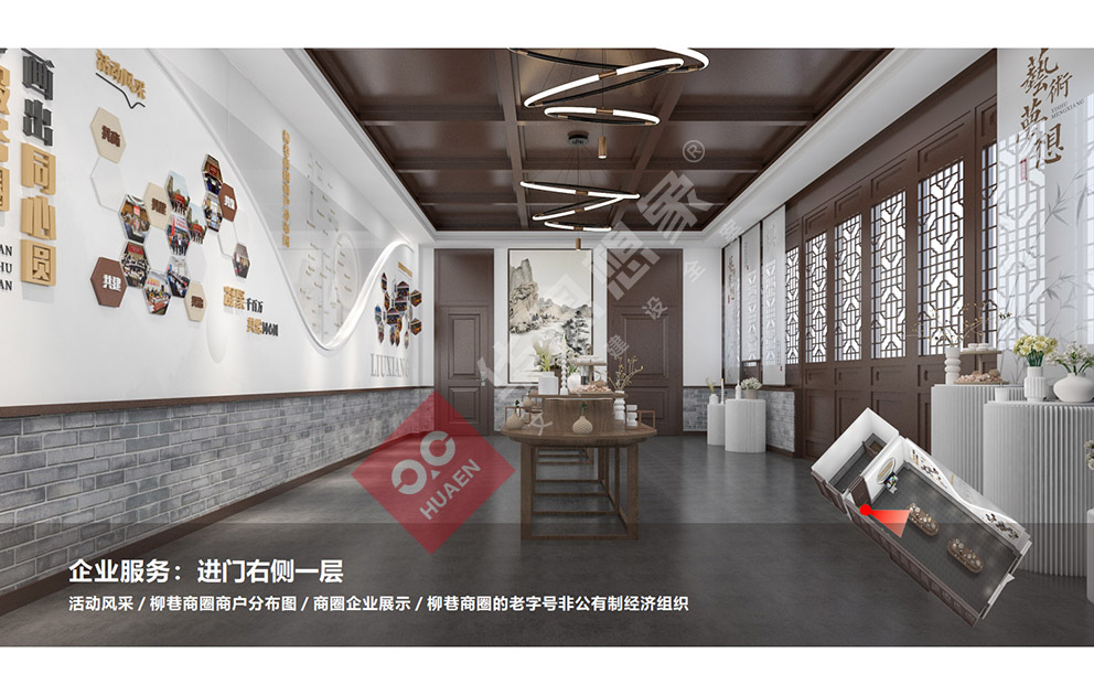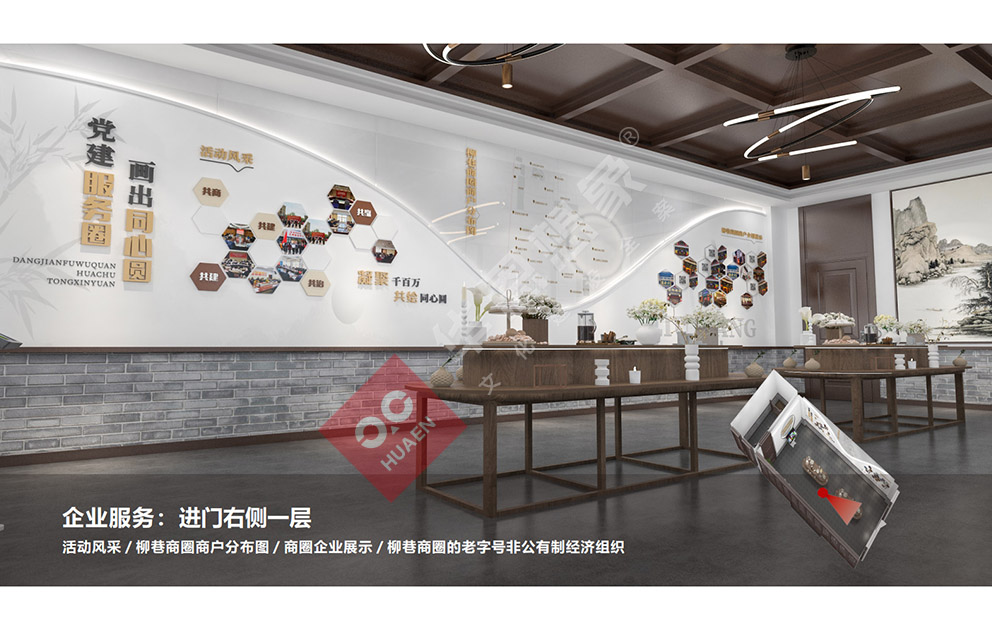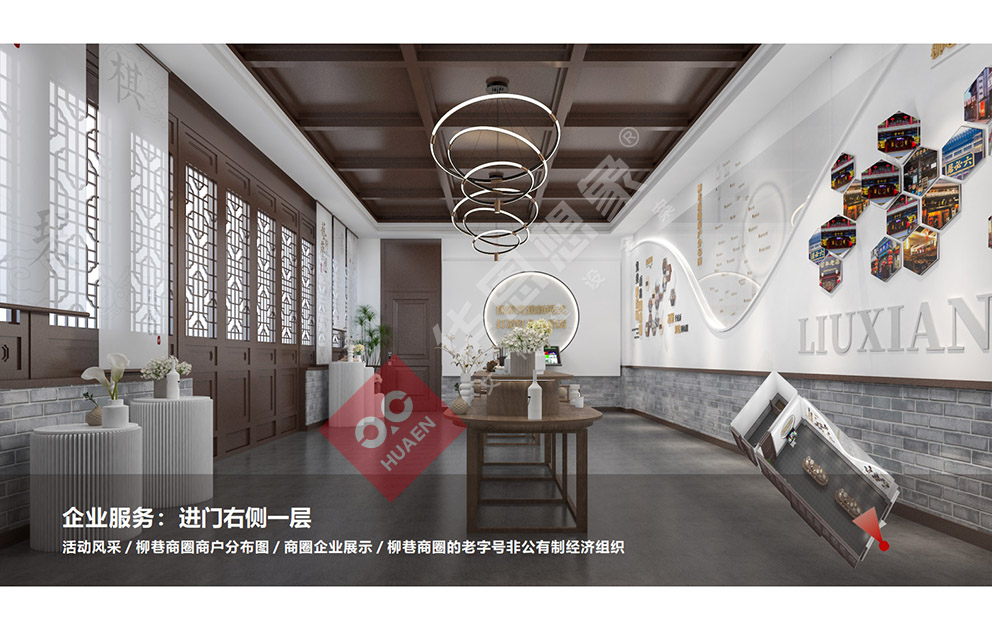 設(shè)計(jì)理念:太原市迎澤區(qū)柳巷商圈黨群服務(wù)中心秉承整體主題大把控,細(xì)節(jié)小處做文章。我們力圖充分運(yùn)用現(xiàn)代設(shè)計(jì)語言, 強(qiáng)調(diào)人文展示特點(diǎn),通過采用圖文展板展柜,集合弧幕投影等多媒體手段,圍合出一個(gè)個(gè)相對(duì)獨(dú)立的專題空間。打造一個(gè)具有想象力的、精致的、高品位的主題展覽館。打造集黨建展示、組織生活、政務(wù)服務(wù)、實(shí)境體驗(yàn) 等為- -體的“有溫度、聚人氣”的商圈黨群服務(wù)中心。